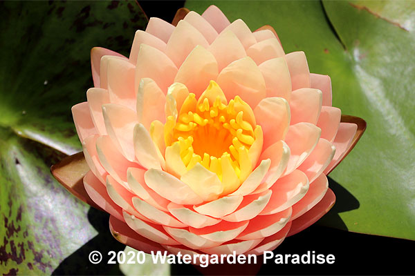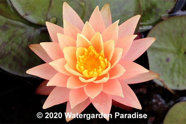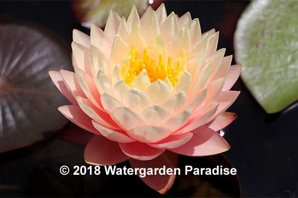 These sunset and changeable coloured waterlilies are suitable for medium to larger ponds or even farm dams. They require a much larger water surface area for their leaf spread, hence, coverage is more when compared with small/miniature size waterlilies. Growth tip of the plant could be submerged between 20cms to 40cms below the water surface. Any deeper than 40cms the plant may not flower or grow properly.
