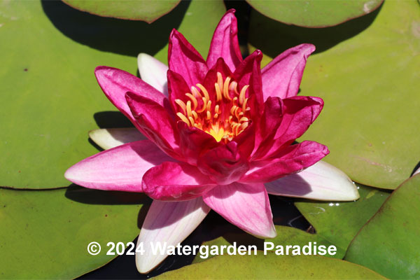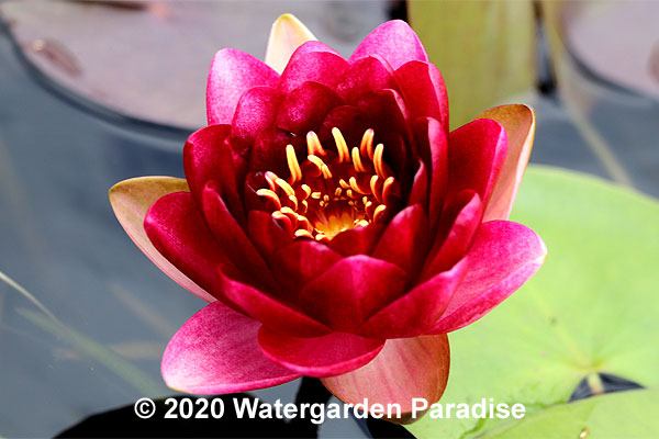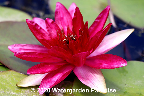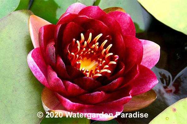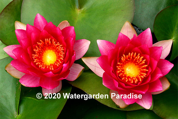 These red/crimson coloured waterlilies are suitable for medium to larger ponds or even farm dams. They require a much larger water surface area for their leaf spread, hence, coverage is more when compared with small/miniature size waterlilies. Growth tip of the plant could be submerged between 20cms to 40cms below the water surface. Any deeper than 40cms the plant may not flower or grow properly.
