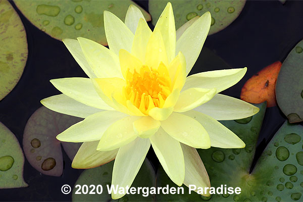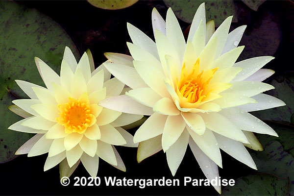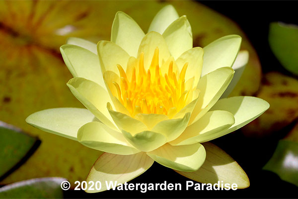These yellow coloured waterlilies are suitable for medium to larger ponds or even farm dams. They require a much larger water surface area for their leaf spread, hence, coverage is more when compared with small/miniature size waterlilies. Growth tip of the plant could be submerged between 20cms to 40cms below the water surface. Any deeper than 40cms the plant may not flower or grow properly.